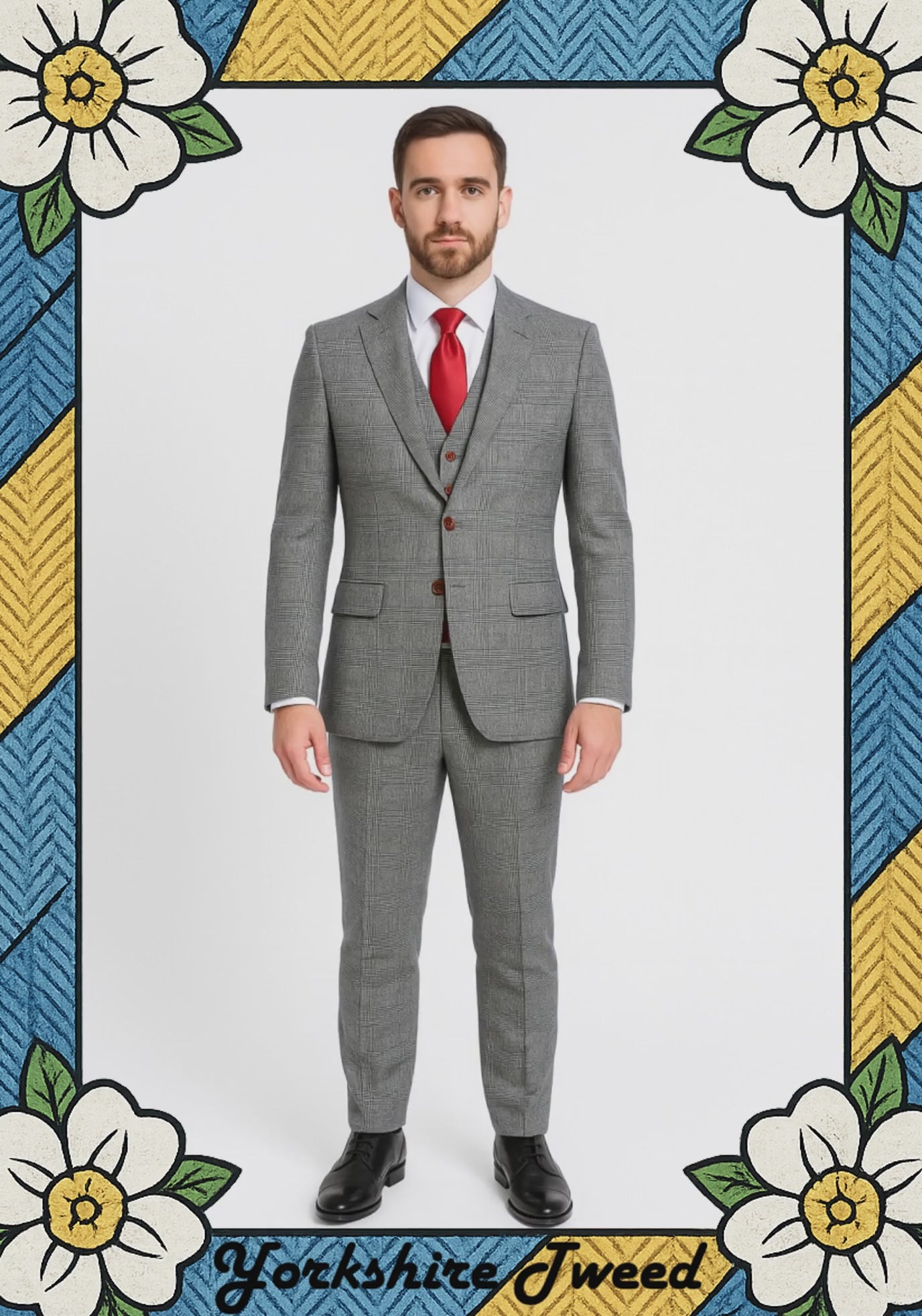 Men’s Grey Glen Check Tweed Three-Piece Suit – Made to Order