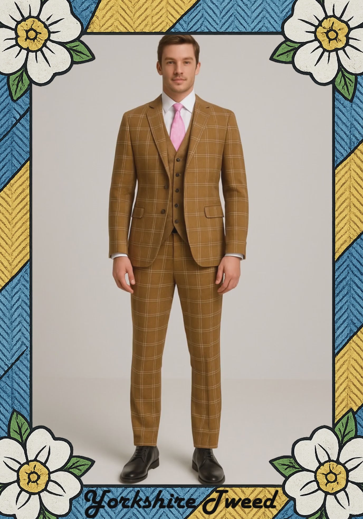 If you’d like a full made-to-measure version later (with detailed body measurements and extra styling options), there’ll also be a Made-to-Measure Tan Windowpane Check Tweed Suit listed separately.